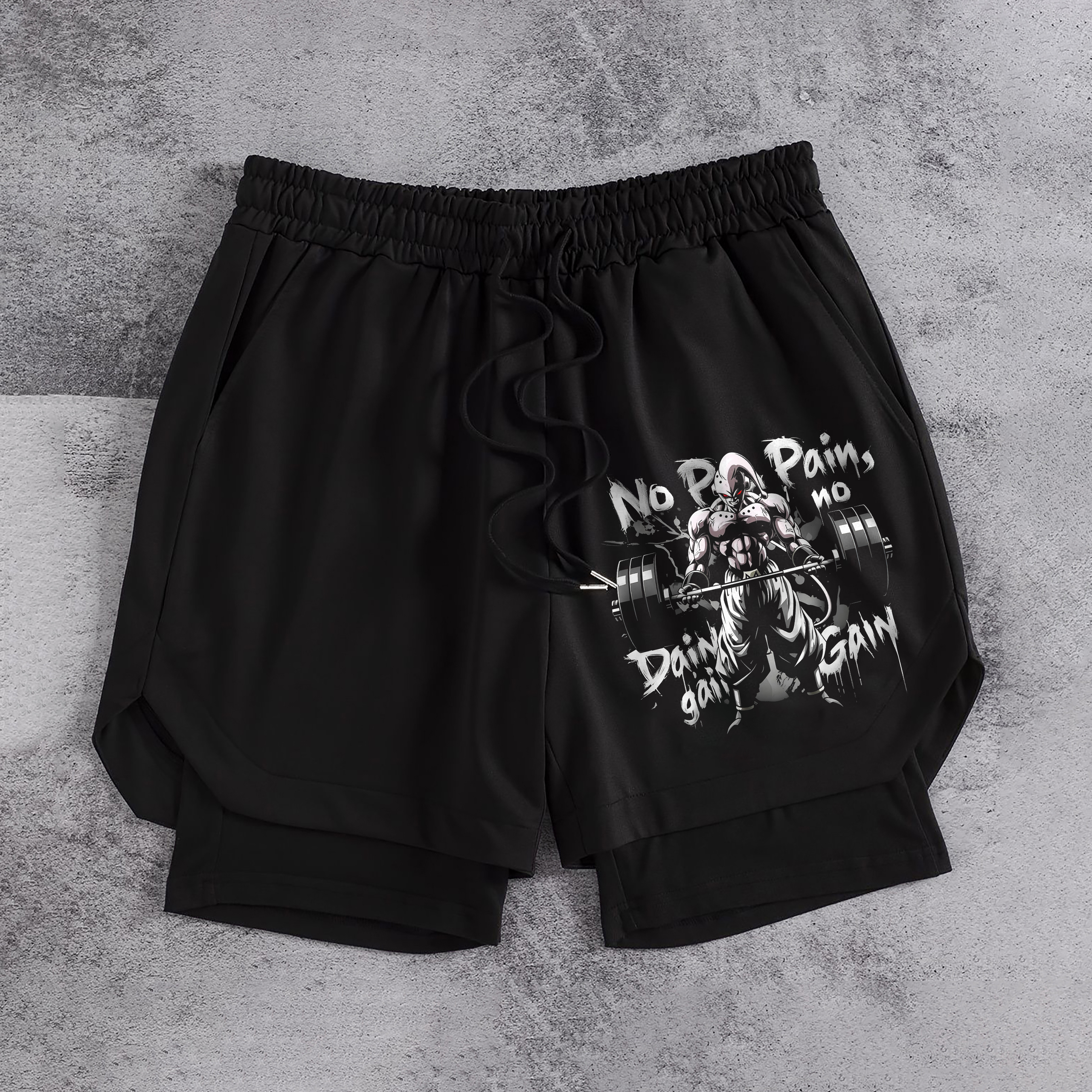Dragon Ball Buu No Pain No Gain Print Men's All-In-One Fitness Shorts