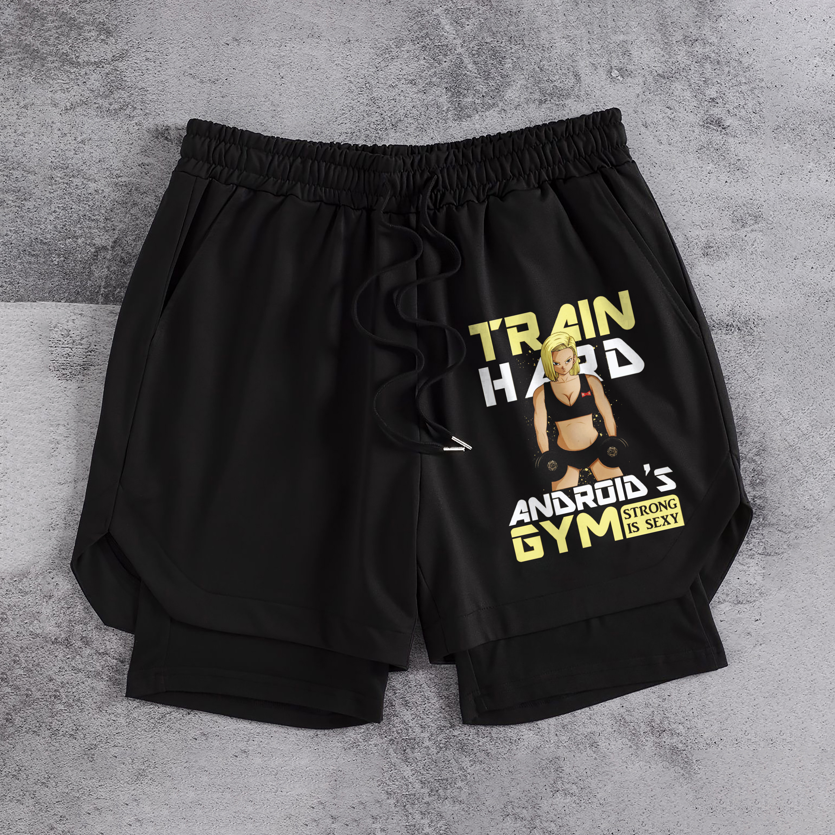 Dragon Ball Train Hard Android's GYM Strong Is Sexy Print Men's All-In-One Fitness Shorts