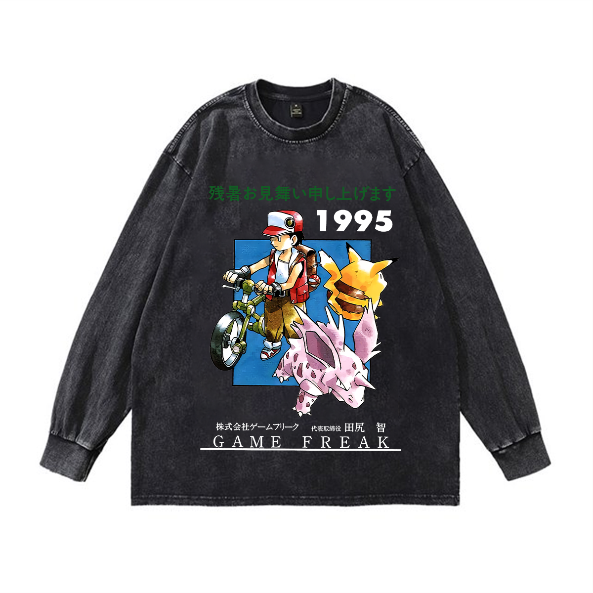 Pokémon Game Freak 1995 Printed Unisex Washed Sweatshirt