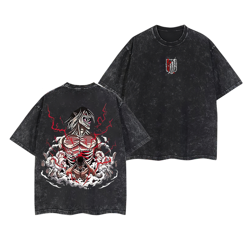 Retro Eren Yeager Attack On Titan Anime Oversize Washed T-Shirt
