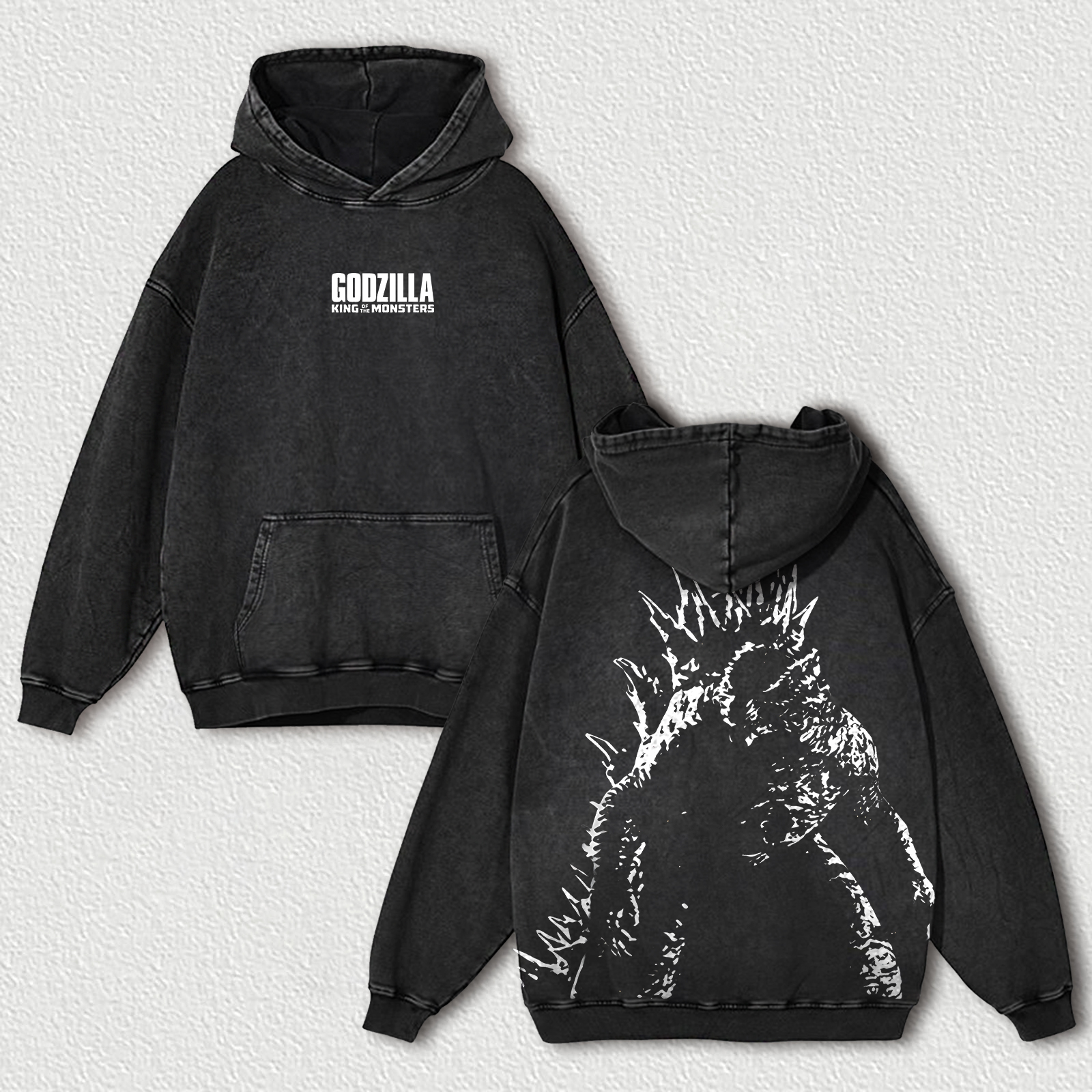 Godzilla Printed Unisex Washed Hoodie