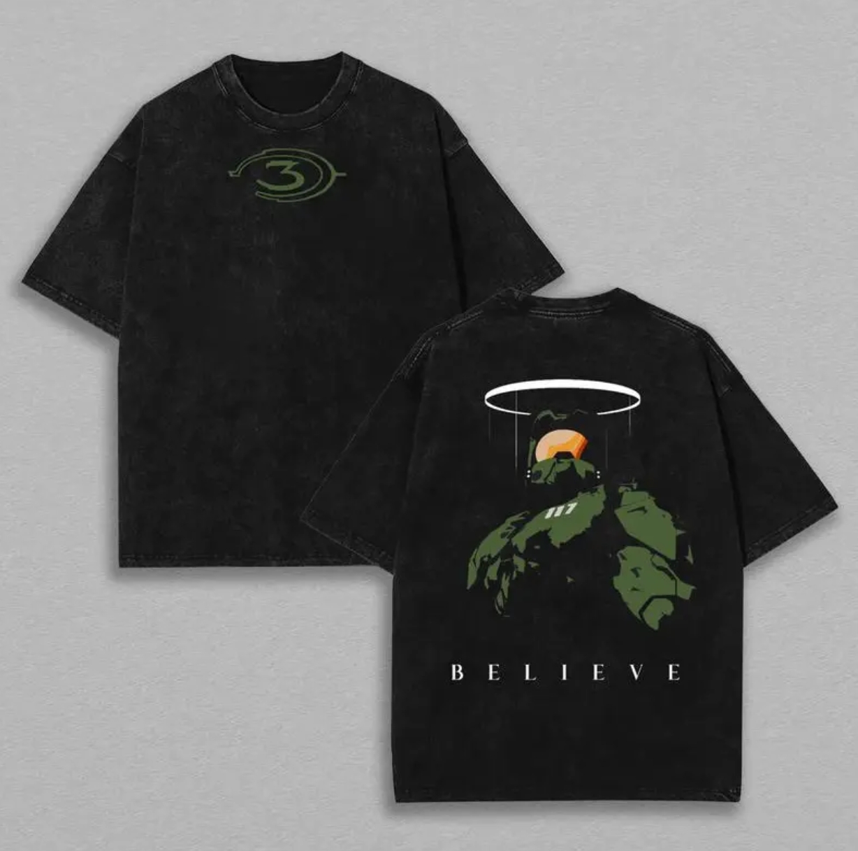Halo Story Master Chief Printed Unisex Washed T-Shirt