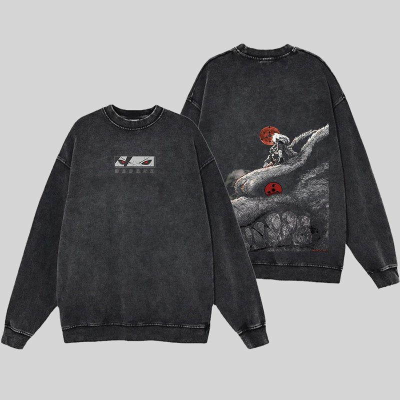 Retro Uchiha Madara X Naruto Anime Printed Men's Washed Sweatshirt