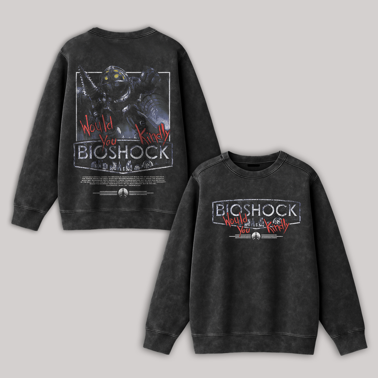 BioShock Would You Kindly Printed Men's Washed Sweatshirt