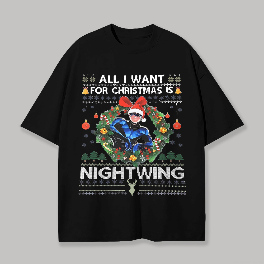 All I Want For Christmas Is Nightwing Printed Unisex Oversized T-shirt