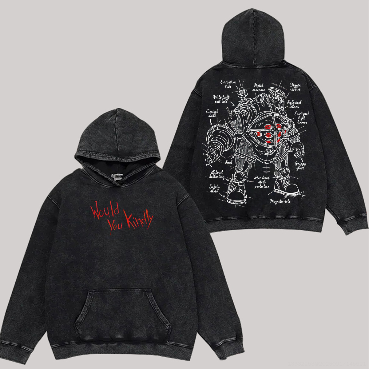 BioShock Would You Kindly Printed Unisex Washed Hoodie