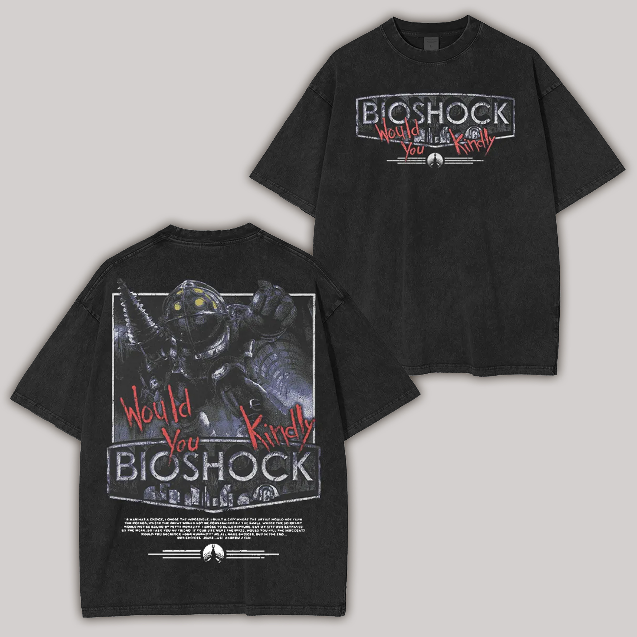 | Product Name | Bioshock Would You Kindly Printed Unisex Washed T-Shirt | ||