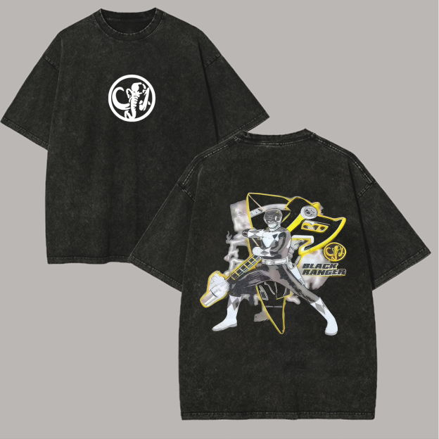 Power Rangers Black Ranger Printed Unisex Washed T-Shirt |