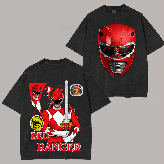 Power Rangers Red Ranger Printed Unisex Washed T-Shirt |