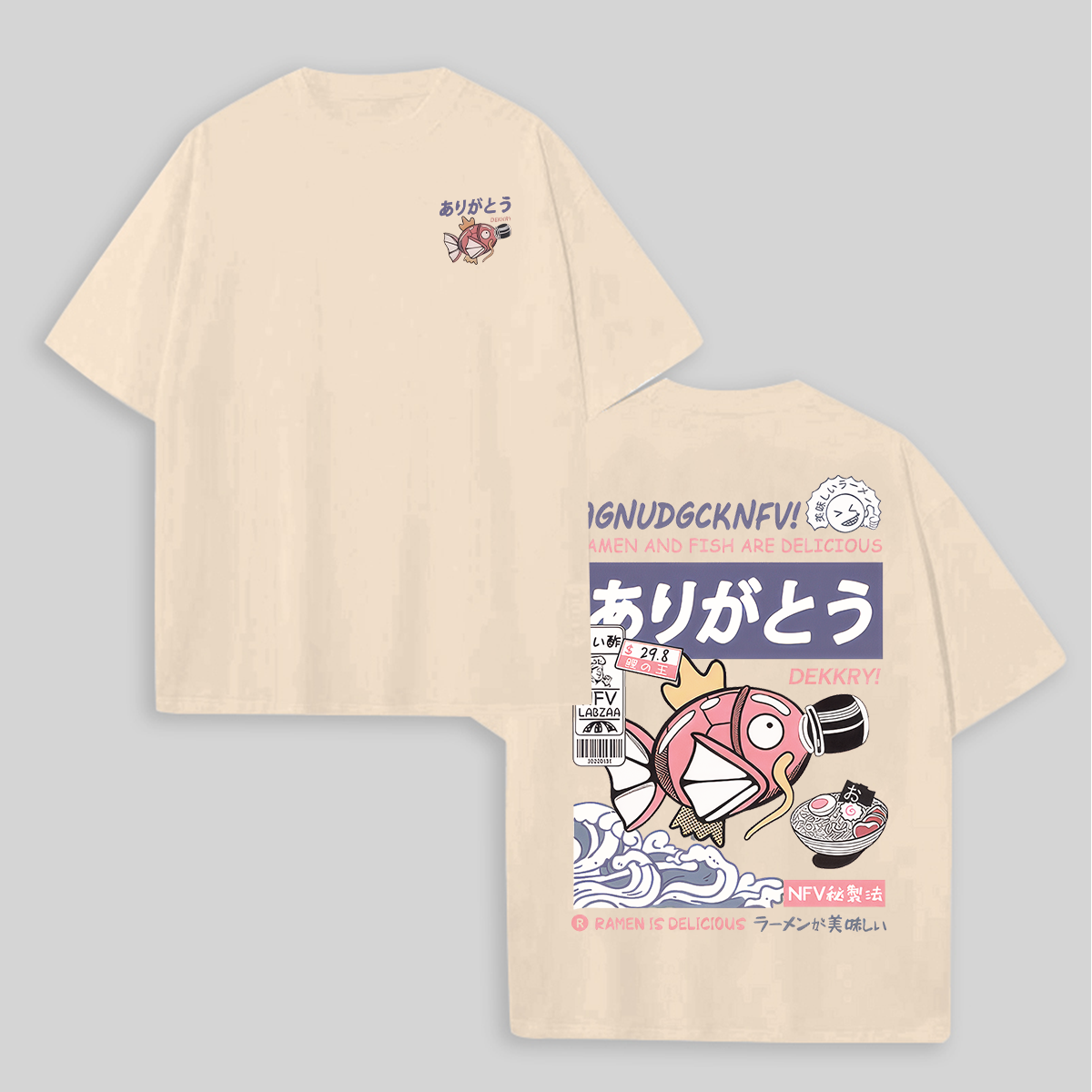 | Product Name | Ramen & Fish Are Delicious Printed Oversized Unisex T-shirts | ||
