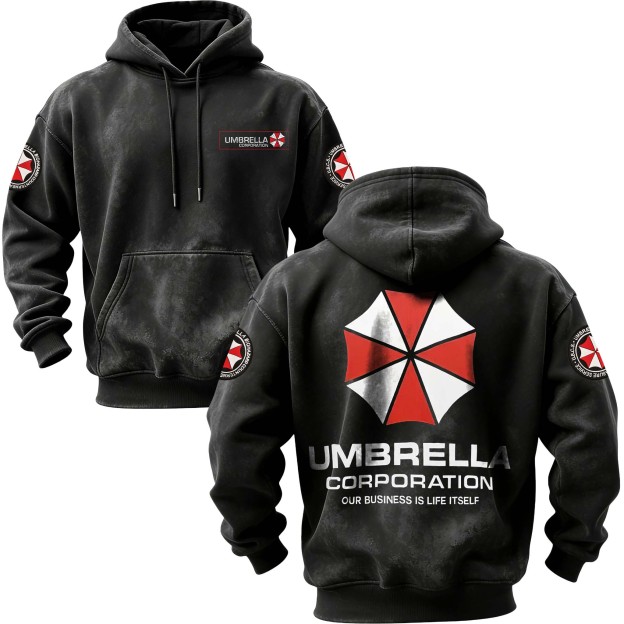 Resident Evil Umbrella Corporation Printed Unisex Washed Hoodie |