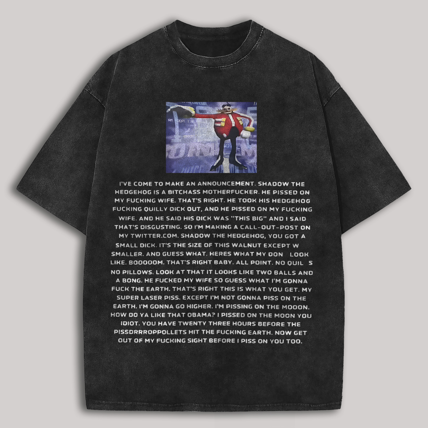 | Product Name | Sonic the Hedgehog Dr. Eggman Printed Unisex Washed T-Shirt | ||