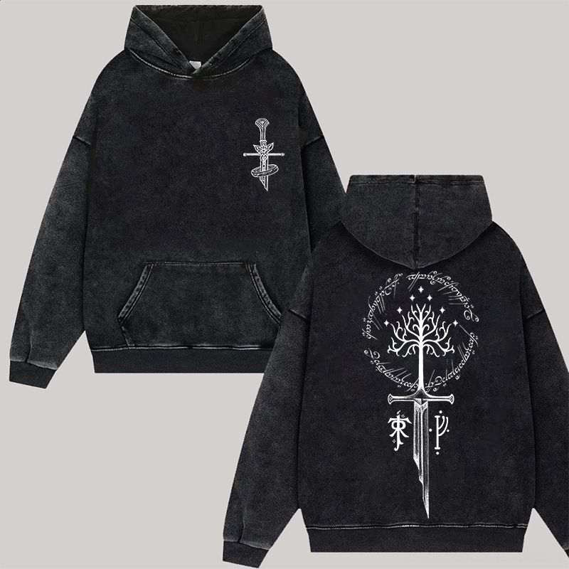 The Lord of the Rings White Tree of Gondor Printed Unisex Washed Hoodie