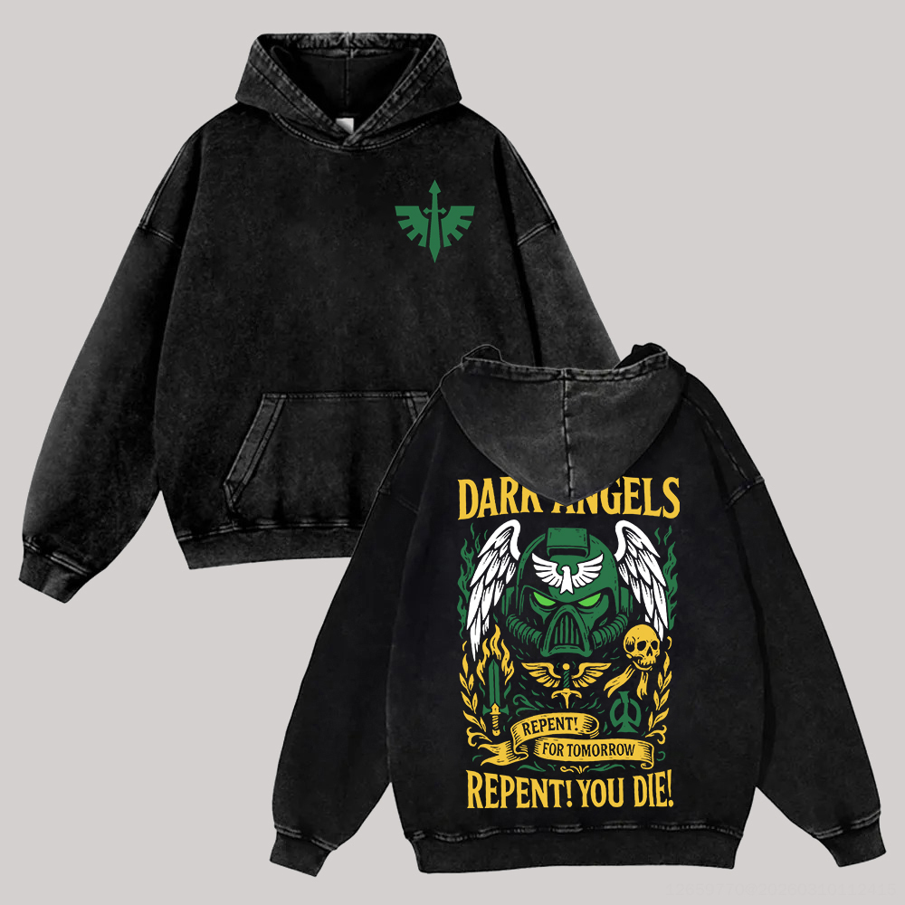 Warhammer 40,000 Dark Angels Printed Unisex Washed Hoodie
