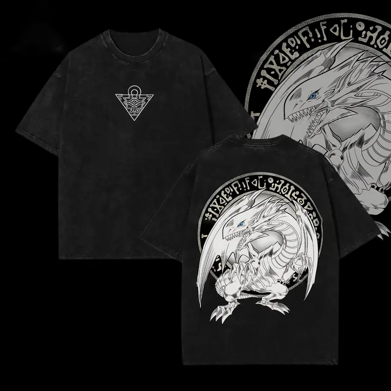 Yu-Gi-Oh! Blue-Eyes White Dragon Printed Unisex Washed T-Shirt |
